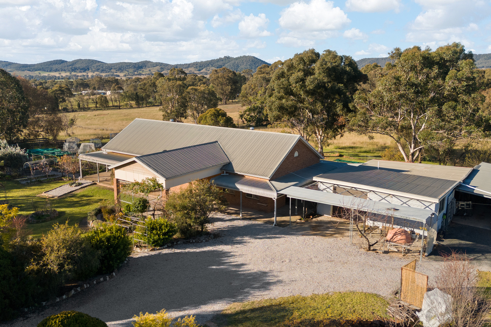 * Substantial brick home with elevated views over the surrounding countryside * Generous combined living room and dining area with high raked ceilings * Well appointed kitchen with walk in pantry, gas cooktop, electric oven, dishwasher * Versatile floorplan providing up to five bedrooms * Spacious master bedroom with walk in robe and ensuite bathroom * Three further guest bedrooms and a home office/fifth bedroom * Ceiling fans throughout, slow combustion wood heater * Steel frame and brick veneer construction; fully insulated; mezzanine storage in ceiling * Verandahs all sides with a pleasant outlook form all areas; Wood fired pizza oven * Multiple garages, sheds, workshop space, carports * Abundant water tank storage, dam with windmill * Numerous established fruit trees, olives, veggie gardens * Cattle yards and ramp; fenced to five paddocks * A well set up lifestyle property in the tightly held locality of Erudgere